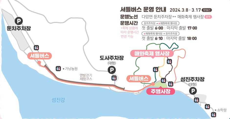 - 운행노선 : 다압면 둔치 주차장 - 매화축제 행사장