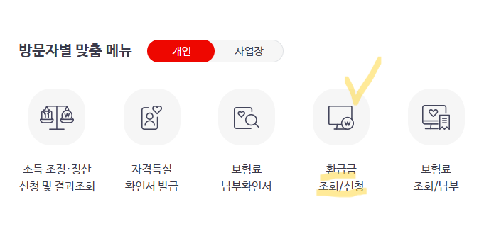 환급금 조회/신청을 누르시면 위와 같은 사이트로 이동합니다.