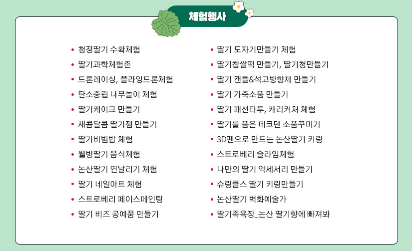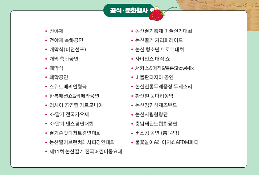 이번 논산딸기축제에서는 다양항 공식 행사가 준비되어 있다고 합니다.