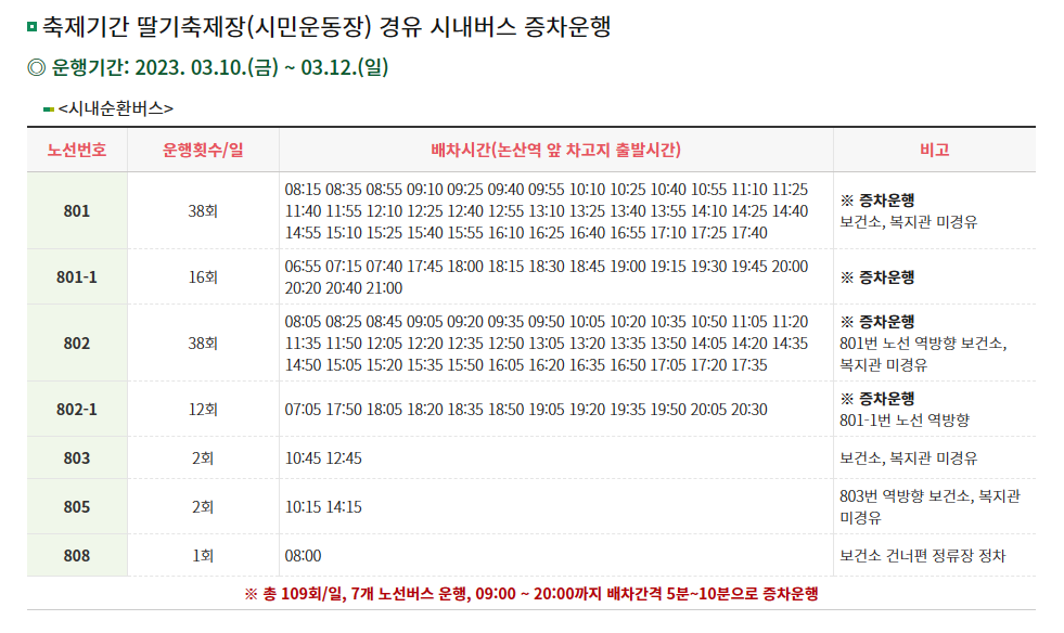 3월 10일부터 12일 이틀간 시내버스를 증차하여 운행한다고 합니다.