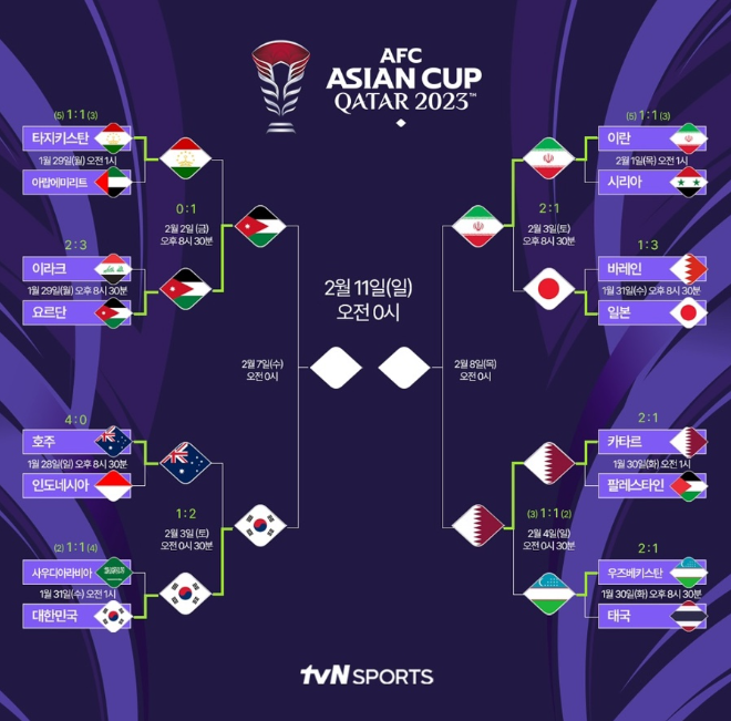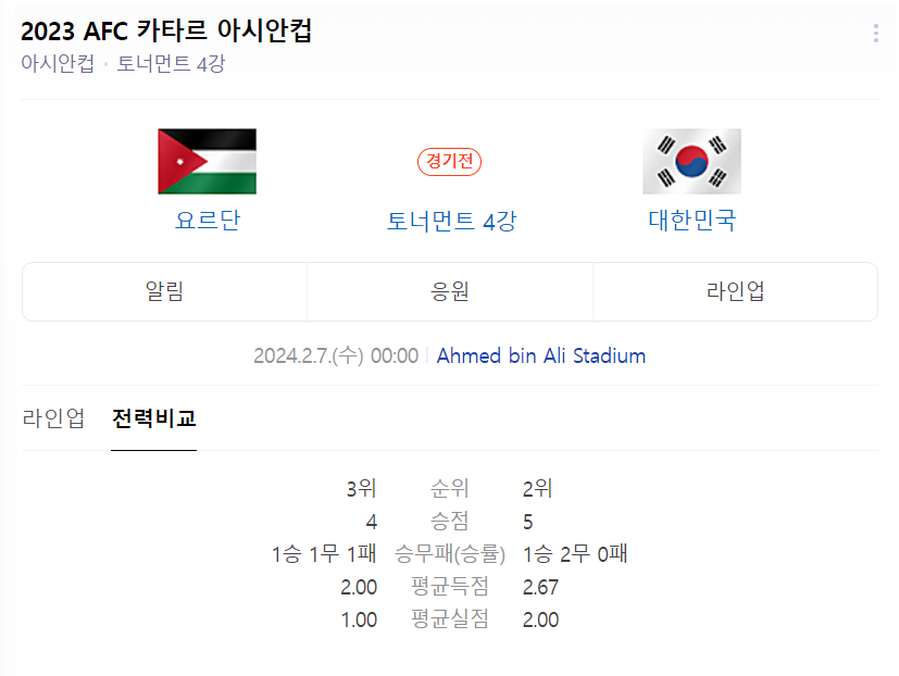6. AFC 아시안컵 4강 (요르단 VS 대한민국) 일정