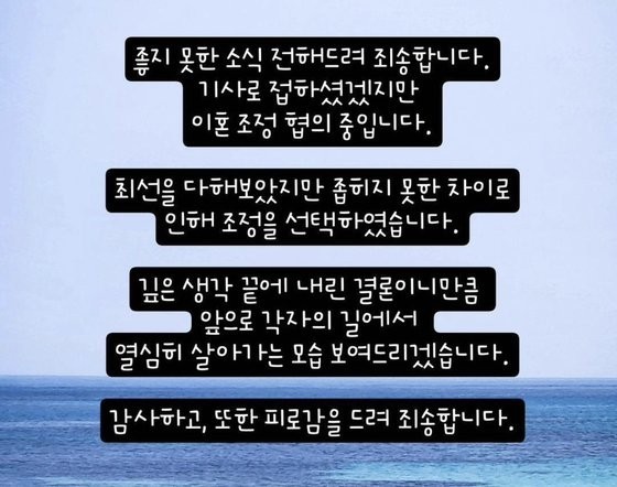 "얼마 전 제 개인사에 큰일이 생겼는데 이혼하면 후련하기만 할 줄 알았지만 실제로 오는 충격은 또 달랐다. 상처가 왔다"라고 털어놨습니다.