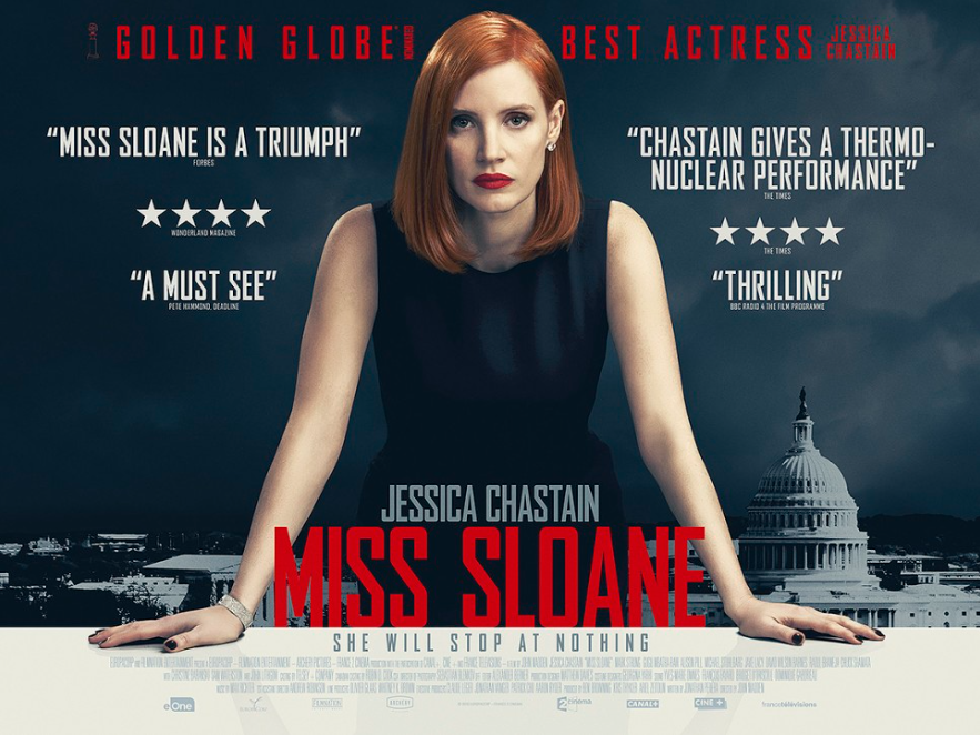 미국의 최고 로비기업 '콜 크래비츠' 에서 일하는 슬론은 지금의 위치까지 오기 위해 수단과 방법을 가리지 않았습니다. 그녀의 능력은 정치권에서도 영향력을 무시할 수 없었습니다. 그런 그녀에게 찾아온 미국 총기 업계 대표이자 상원 의원으로 재직 중이던 샌포드는 총기 규제 법안인 '히튼-해리스-법안의 통과를 막고자 그녀를 찾아오게 된 것입니다.