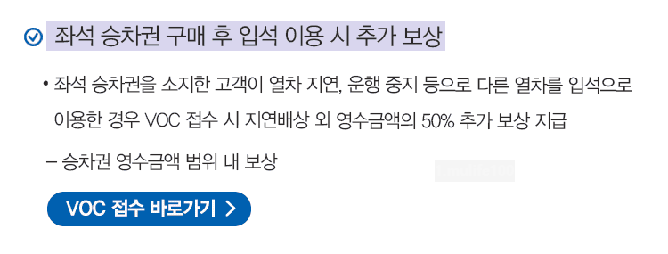 좌석 승차권 구매 후 입석 이용시 추가보상
