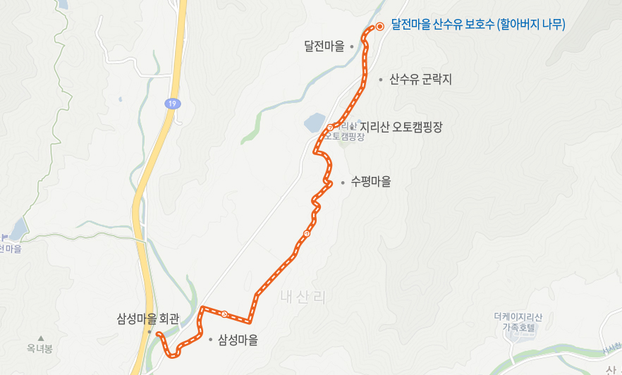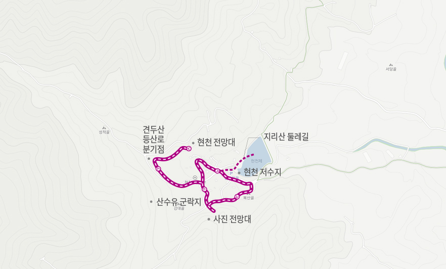 제5코스(둘레길) : 현전체에 비친 산수유와 지리산 둘레길의 만남 코스, 1.4km 30분 소요