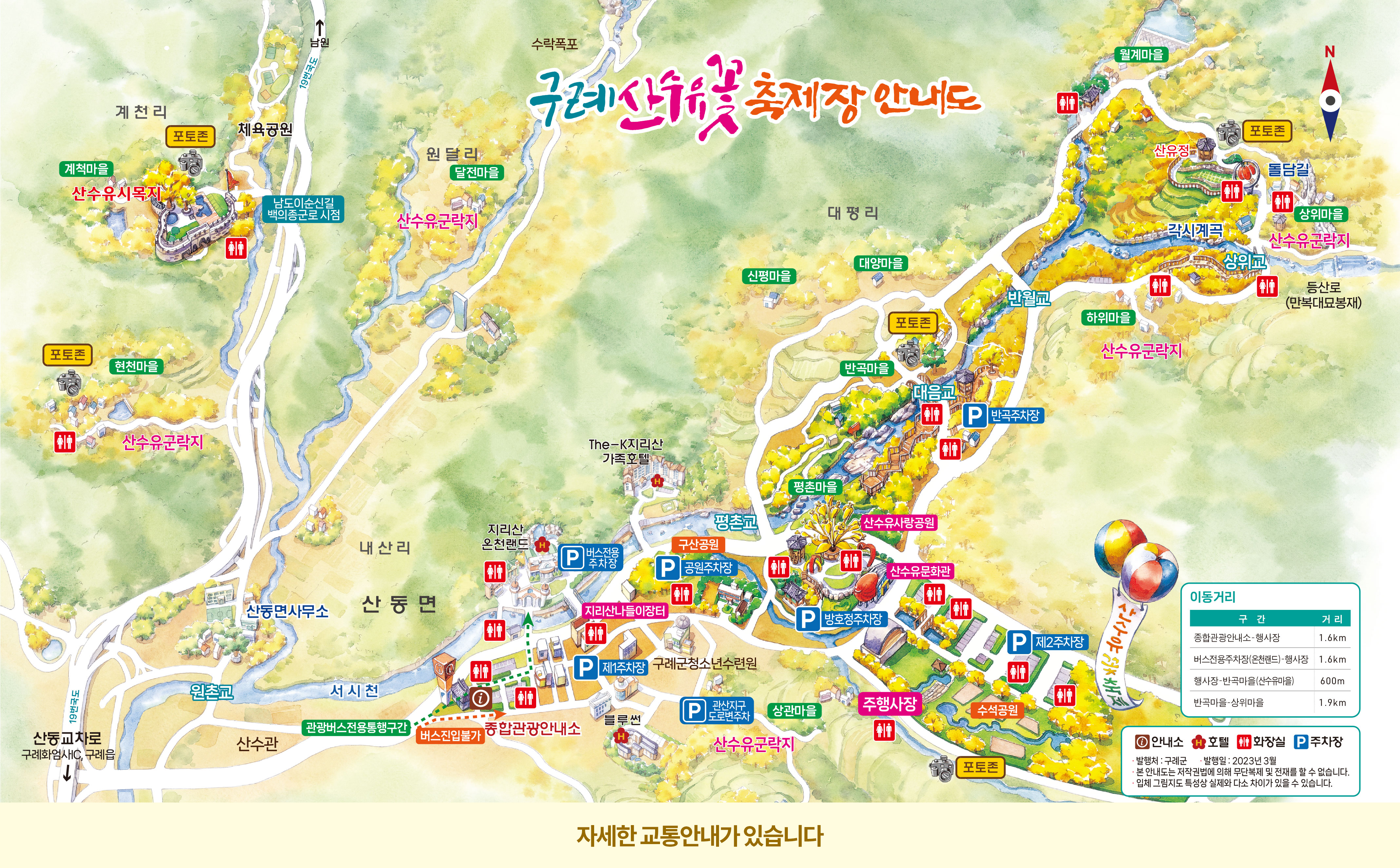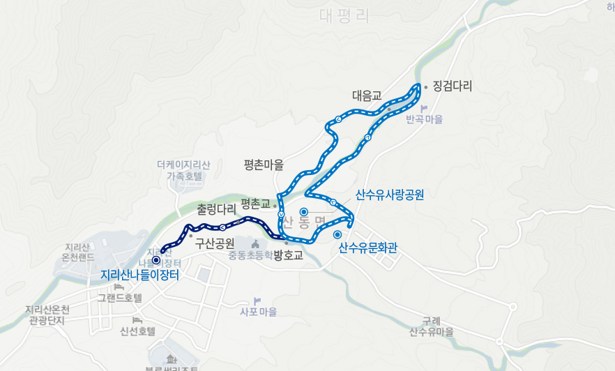 원좌로터리-산수유문화관-반곡-상위-평촌교-관광안내소-평촌교-관광안내소