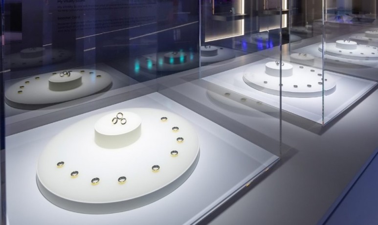 사이즈는 전시된 반지가 총 9개의 사이즈가 있었으며, 갤럭시링의 폭은 약 1cm 내외로 확인이 되고, 두께는 2mm 정도 되는 것처럼 보입니다. 우리가 생각하는 일반적인 반지보다는 조금은 크기 때문에 근력이 없는 분들에게는 조금은 불편한 감이 없지 않을까 하는 우려도 있습니다.